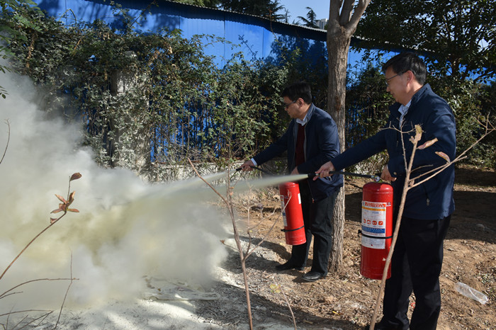 隨后進行的現(xiàn)場消防演練中,在模擬發(fā)生火情,警鈴響起后,全體員工迅速俯身并遮掩口鼻,快速、有序地從所在樓層消防通道處進行緊急疏散,并分組依次使用滅火器進行滅火實操。