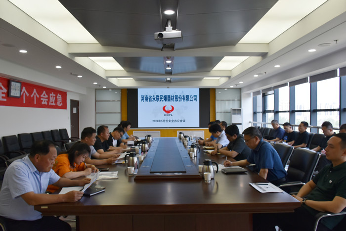 2024年5月28日,河南省永聯民爆器材股份有限公司召開了5月份安全辦公會議,公司領導班子、安委會成員、安委會辦公室成員以及桐柏、淇縣、新縣、陜州、內鄉縣、商城縣等6家分公司負責人參加了會議。會議由公司副總經理靳義國主持,公司董事長、總經理劉嵩參加會議并講話。