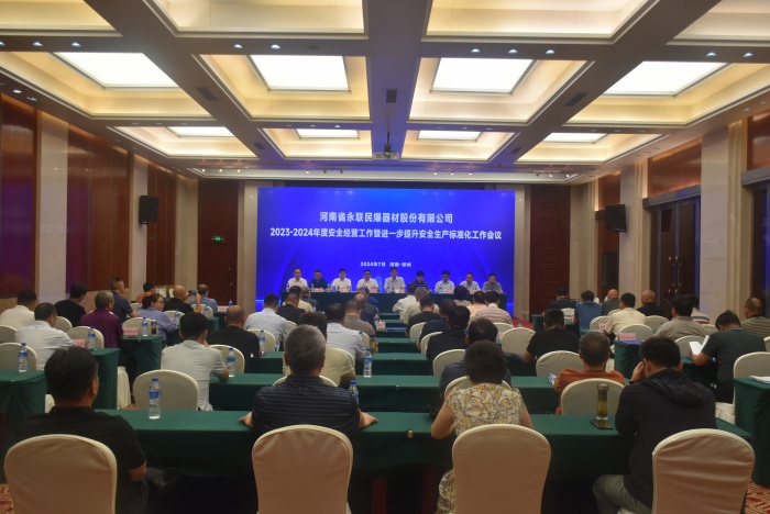 2024年7月16日,河南省永聯民爆器材股份有限公司2023-2024年度安全經營工作會議在鄭州黃河迎賓館召開召開,公司安全生產委員會成員以及所屬41家分公司負責人參加了會議。會議由副總經理張鐵飛主持,省委軍民融合辦民爆局局長王玉生應邀出席會議并講話。