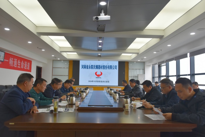 2024年10月31日,河南省永聯民爆器材股份有限公司召開了10月份安全辦公會議,會議由公司總經理靳義國主持,公司領導班子、安委會成員、安委會辦公室成員以及禹州、舞鋼市、新安縣、西峽縣、鶴壁、鄧州市、固始縣等7家分公司負責人參加了會議。