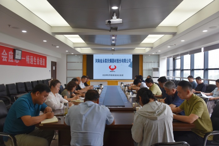 2025年5月30日,河南省永聯民爆器材股份有限公司召開了5月份安全辦公會議。公司安委會成員、安委會辦公室成員以及靈寶市、舞鋼市、方城縣、駐馬店市、新安縣、鶴壁等6家分公司負責人參加了會議。會議由公司工會主席黃小虎主持,董事長劉嵩、總經理靳義國參加會議并講話。