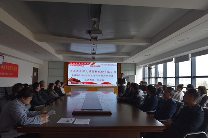 公司特邀河南省消防協會趙超磊教員為全體員工進行了消防安全知識專題講座。趙教員結合民爆行業特性及近期典型火災案例,生動細致地講解了火災預防、初期撲救、火場自救及各類消防器材的正確使用方法等關鍵知識,使“預防為主、生命至上”的安全理念更加深入人心。